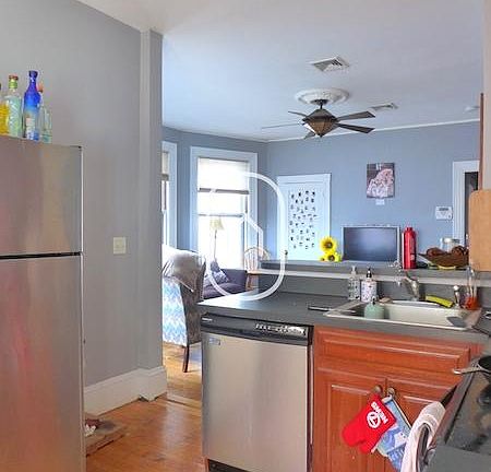 Recently remodeled unit Large and open concept living space DIne-in kitchen and breakfast bar Stainless steel appliances Dishwasher/microwave/gas stove Three large bedrooms Modern lighting and ceiling fans One full spacious bathroom Hardwood flooring throughout In unit laundry Central heat andA/C Porch off of kitchen Off street parking available for rent Professionally managed Short walk to Brigham Circle Easy access to many universities in the area Green line and Orange line access