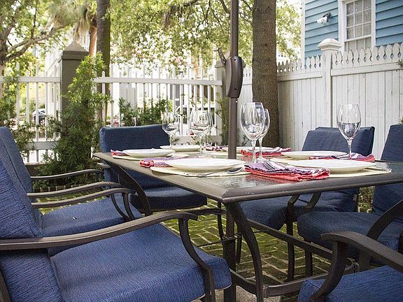 Cottage In The Heart Of Upper King Street/Cannonborough THE AREA Slightly north of the College of Charleston on historic St. Philip Street this charming cottage is the perfect base to enjoy an enchanting Charleston experience. Charleston is like Rome Italy in that most of notable monuments and historic details are found in a fairly confined area. You can literally walk from the Cottage to the southernmost extremes of the Historic District in under thirty minutes. This journey will take you through the Historic King Street District, and the neighborhoods of Cannonborough, Elliottborough , Radcliffborough, Harleston Village, and finally South of Broad, until you reach the Battery itself. Go east one block and you are on King Street, the home of designer shops, eclectic boutiques, antique stores, and host of other fascinating shops as well as nationally acclaimed restaurants. Upper King is the new center of Charleston s renowned restaurant and night life. A recent survey of the Essential 18 Charleston Restaurants has seven of these restaurants (Hominy Grill, Indaco, The Grocery, The Macintosh, The Ordinary, Two Boroughs Larder, Xiao Bao Biscuit) within four blocks of the cottage. THE COTTAGE The cottage is a three bedroom stand-alone home, set back from the street with an off street parking place. It is perfect for a family or friends staying together. A spacious living room furnished with two new West Elm sofas (one is a sofa-sleeper with high end gel mattress), chairs, HDTV, charming bar provides a nice area for entertaining and socializing with fellow friends. A full size, well equipped kitchen with adjoining dining area with seating for six connects to the living room. Bedrooms Each of the three bedrooms has queen size beds, chest of drawers, bedside lighting and at least one chair or sofa. There are two double closets in two of the bedrooms, and a single double closet in the third. A chest of drawers is conveniently placed in one closet in each bedroom providing fabulous storage and easy organization of your personal clothing. Bathrooms The two bathrooms are convenient to the three bedrooms: one is equipped with a tub and shower combination while the other has a shower only. The baths have ample storage for your personal effects. Electronic equipment Electronic equipment includes WiFi internet connection, cable HDTV, coffee maker, micro wave, hair dryer, toaster oven, iron with ironing board, washer and dryer. COURTYARD The attractive bricked courtyard leading into the house is a favorite place for outdoor dining, morning coffee or afternoon cocktails. It is enclosed and secure. It is safe for children and pets. This is one property where your pets are welcome. A gas grill along with a dining table, umbrella, and six comfortable chairs are provided. Monthly rent includes utilities