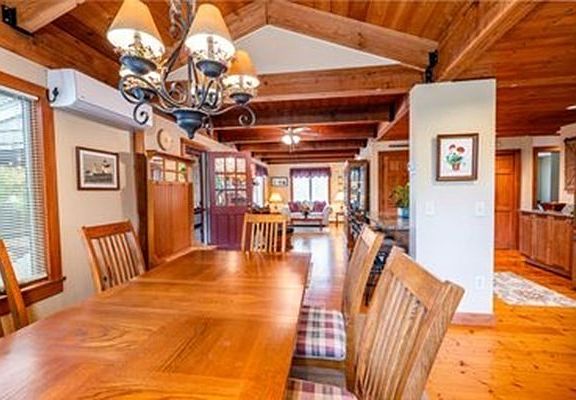 Your wait is over! This gorgeous 3 bedroom 3 bath Cape style home boasting a country flair offers an open floor plan, tongue in groove ceilings, living room with a wood burning fireplace and dining area. This amazing home features a beautiful kitchen with granite counter tops, oversized first floor primary bedroom suite with Jacuzzi and walk-in closet, first floor laundry, large post and beam family room with gas fireplace, a nice private deck and a covered porch. The other 2 bedrooms are located on the second floor. The lower level consist of a den/home office, another family room and the walkout basement.