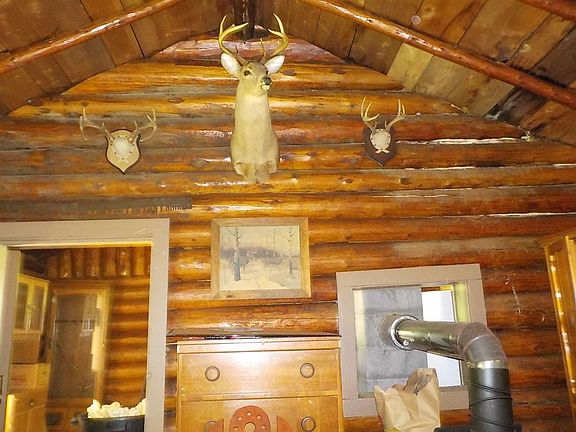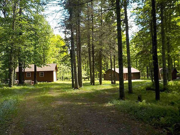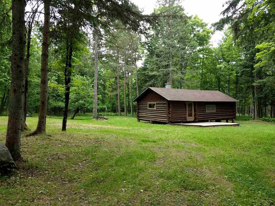 Well maintained older log cabin set on 80 private acres just minutes from Iron River. Mostly high ground with beautiful hardwoods, a creek & the property touches Lake Nine! Log cabin is 17x34 and features two rooms: a combination kitchen / dining room and an open living area and bunk room. Cabin has a new roof along with a 12x18 composite deck out front. There is a generator, gas lights, newer gas stove and refrigerator and both propane & wood heat. There is a non-functioning outside spigot from back in the day when Bates Township water supplied this area but this is no longer the case. Current owners haul water in. Power is about 1 mile away. Seller recently replace support posts under cabin. Outbuildings include a newer storage garage, a generator shed, a covered pavilion like stone cookout area and a double outhouse. Many trails and deer stands throughout the parcel.
