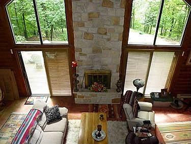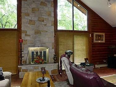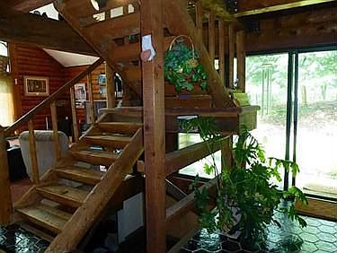 Enjoy the ultimate in privacy in this three bedroom log house located on 7 acres of level to gently rolling land. The first level features a combined living room and dining room with a stone fireplace, vaulted ceilings and sliding glass doors to the deck. Also included on the first level is the kitchen with a breakfast bar, two bedrooms and a full bath. The upper level features the master bedroom that overlooks the living room and has a sliding glass door to a balcony over the front entry. Also included on this level is the master bath and two closets. The lower level features a game room with a stone fireplace, laundry and access to the two car garage. Look no further for a unique home that is very privately located and minutes to everything!!