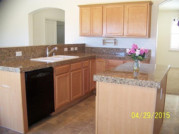 Very light and bright and ready for new occupants. Third bedroom is a large den that is used as a bedroom with a stand alone storage unit, no closet. Central air conditioning and ceiling fans will keep you cool in the summer. The kitchen features granite tile kitchen counters, pantry, island, breakfast bar, gas stove, built in microwave, ample maple cabinetry and lots of counter space.