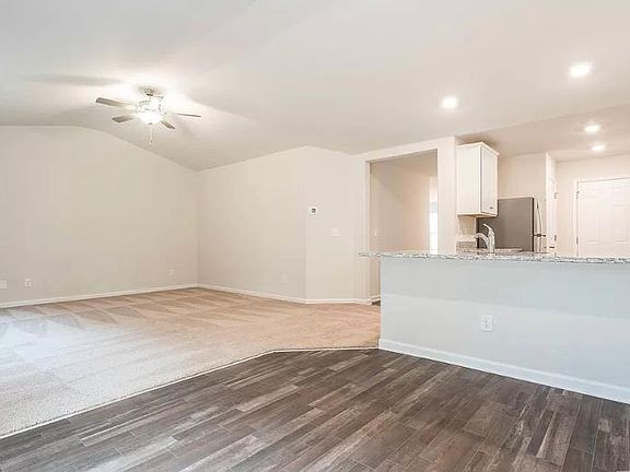 Home is a must see! The open floor plan is perfect for day to fay living and entertaining. In the living room and kitchen there is a vaulted ceiling that provides beautiful elegance. Kitchen includes granite countertops, stainless steel appliances, recessed lighting, and custom wood cabinets. Master suite is super spacious!