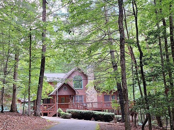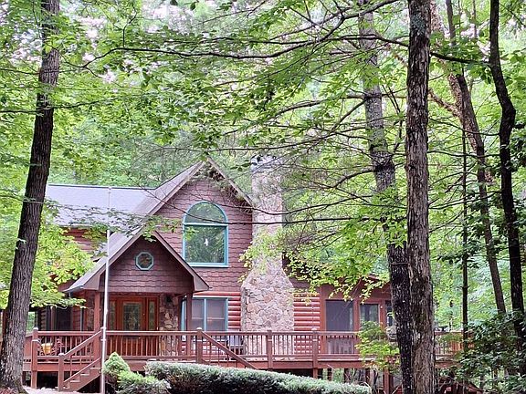 This 3535 square foot cabin boasts, 3 large bedrooms and three bathrooms. This home is just what you and your family are looking for in a gated community. Not too far away from town but still very private and all paved roads lead you to your 2.77-acre slice of North Georgia Heaven! Nestled in the lovely and well-maintained Shepherd's Ridge subdivision, this community protects your investment with appropriate property restrictions. A comfortable drive from Morganton, GA through some awesome scenery in ANY season. As you enter the property the home sets back off the road making a stately entrance to your new home. The interior is all pine and the closets are all cedar! Large rooms abound. The living room has a gorgeous stone fireplace, and there are two more fireplaces as well. One in the main level primary suite ad well as the downstairs living area. Beautiful granite throughout keeps adding to the sense of elegance in this home. All wood, quality made kitchen cabinets and a dining room table that was hand built for the space. The upstairs loft adds very usable multi-purpose space for you to use as you wish. Ample sized bathrooms are found on each of the 3 floors. The owners have recently added a smart thermostat, and all new locks on all doors. On top of all this. there is a healthy size detached 2-car garage that matches the home's architecture and has electricity and a workshop within. In addition, you will find a nice, custom-made garden shed with electricity as well. This home has so much to offer. Call to make an appointment to see. Even the gun safe in the basement stays with the property after the sale is completed! There is also a den with French Doors leading to the firepit and in the porch area a custom wood carved swing. Also a brand new slate walkway around back. The list goes on and on for this beauty.