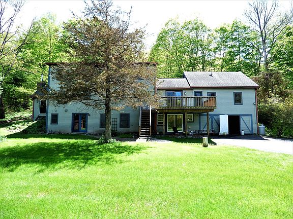 Contemporary Cape, Roeliff Jansen Kill Riverfront plus a Private Pond. Lovely Setting with Privacy. !st Floor bedroom is a potential MBR. Spacious Kitchen with Great Room & Deck, Ample Living Room, FDR, MBR & 2nd Bedroom on the 2nd Floor, 4 Car Garage, Solid House, Great Mechanicals, Needs Cosmetic TLC.