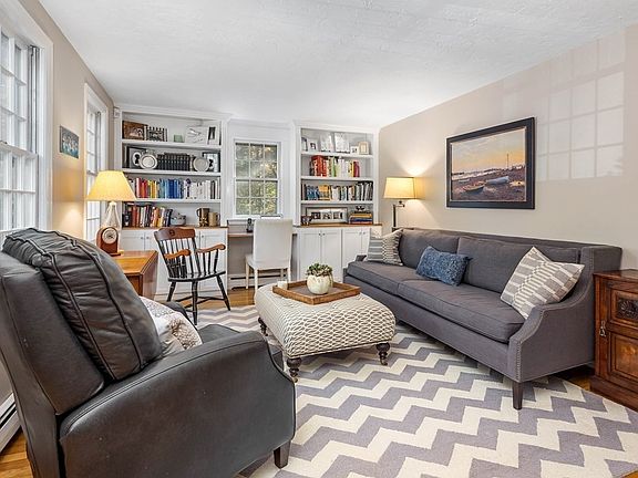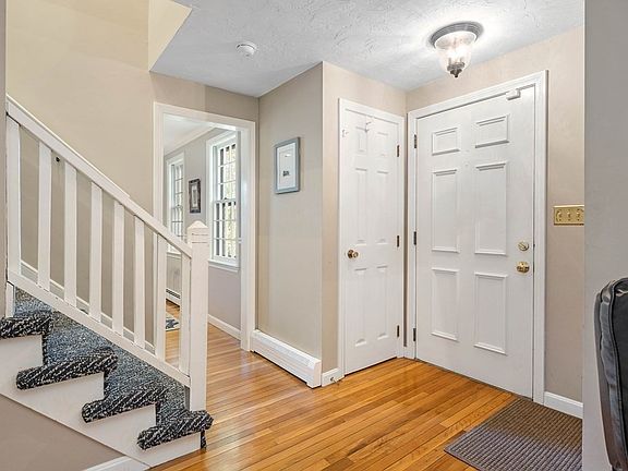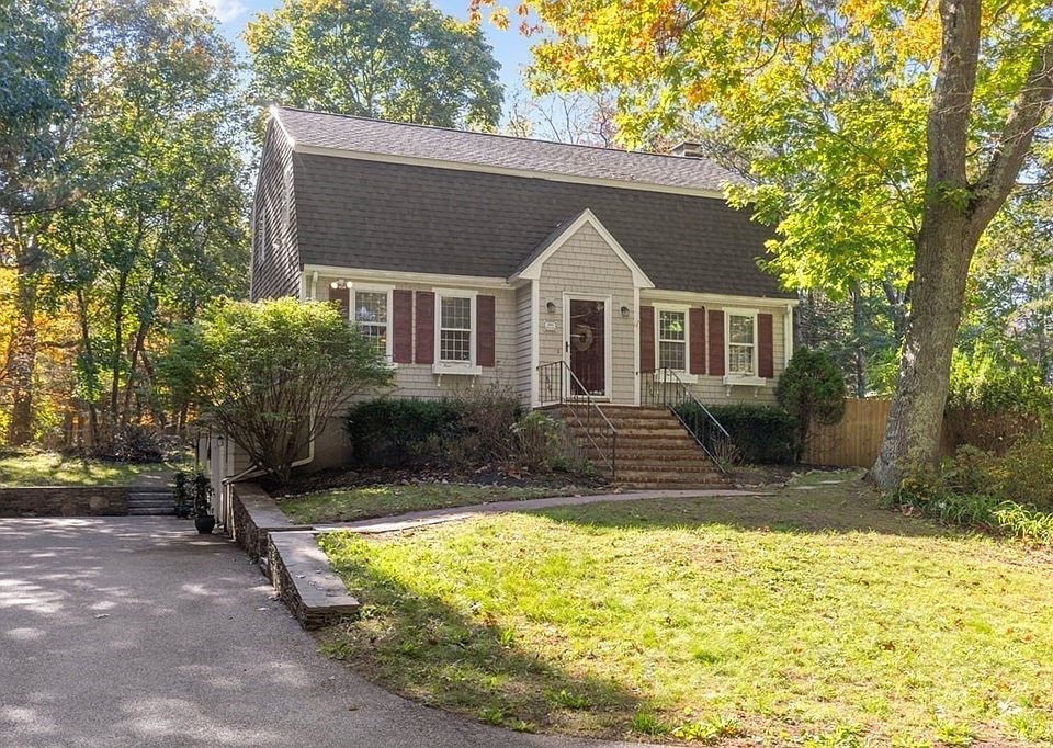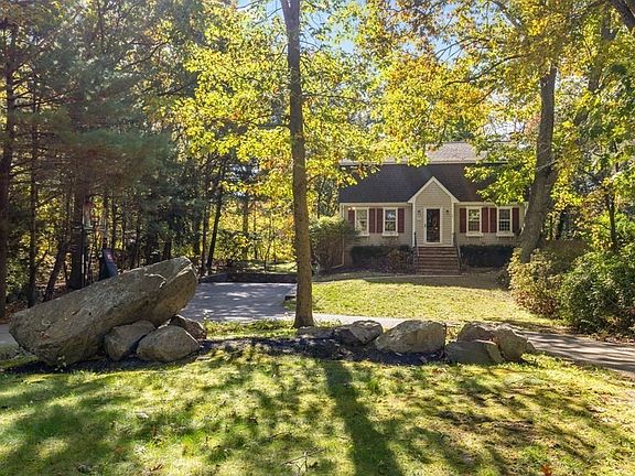 Pretty Gambrel tucked away on a quiet country lane, in a convenient Hingham location just 1.5 miles to downtown Hingham and within walking distance to the train. Beautiful and spacious cherry kitchen with oversized island, soap stone counters, stainless appliances and a fireplace open to a fabulous family room w/vaulted ceiling. A dining room and cozy living room complete the first floor. Upstairs there are 3 bedrooms including a front to back primary bedroom. Bonus sunroom to extend enjoyment of the outdoors and a large deck that flows nicely to the fenced, level, back yard. Circular drive, beautiful stone walls and an outdoor shower! Oversized 2 car garage with a mudroom space and cozy playroom or gym. Move in and enjoy and plenty of room to expand!
