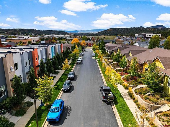 Wonderful town-home in Three Springs; the main level includes 9ft ceilings and wood floors with an open concept, modern style floor plan. There are stainless appliances and huge kitchen island. Enjoy the open living room/dining/kitchen space with access to an outdoor deck. The upper floor has two bedrooms. The primary is large with plenty of closet space, new ceiling fan, bathroom with large shower and double sink vanity. The second bedroom is expansive and has a large closet and has a full bathroom. Enjoy the convenience of the washer and dryer being on the second floor with the bedrooms. The 2-car tandem over sized garage has ample storage space, can easily fit vehicles, bikes, kayaks, etc. There is no backyard, but the home is ideally located near a large playground and park, ample places to walk/bike in the neighborhood and just a few steps away from the SPURLINE trail system. Three Springs has many organized events during the summer, concerts and outdoor movies. Enjoy restaurants, a corner market and a gym all within walking distance. Also, close to Wal-Mart and downtown Durango. Don't delay! See it today.
