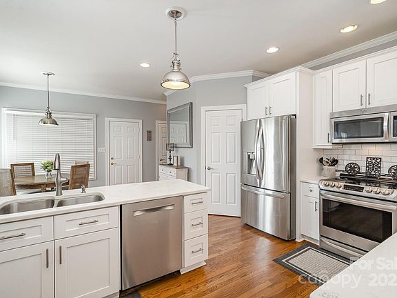 Beautiful, custom-built home in highly sought after neighborhood, 2 miles from downtown Davidson w/ Iredell County taxes! Property was updated in 2019. The kitchen boasts white shaker cabinets, quartz countertops, s/s appliances and a breakfast nook. A large dining room w/ a built-in bar. Family room has 14-ft vaulted ceiling, handcrafted floor-to-ceiling ledger stone fireplace with double french doors opening to large patio for outdoor living on 0.60 acre lot. Office w/ french doors & intricate ceiling trim. Primary suite has trey ceilings, bay window, large frameless shower, elegant soaker tub, two separate sinks and two separate walk in closets. Crown molding & custom ceilings throughout. The full brick exterior adds durability & low maintenance. Oversized 4-car garage for all your toys and extra driveway space to park an RV! All this just minutes from downtown Davidson/Davidson College with great restaurants and eclectic shops. Low HOA!