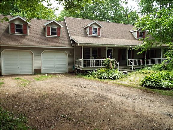 Cape Cod w/ Full Length Covered Front Porch on 4.37 Acres*First Floor Owner's Suite & 2nd Bedrm/Office w/ 2nd Full Bath*Maple Hardwood Flooring in Liv/Din Rm & Owner's Suite*Big Country Style Kitchen w/Butcher Block Counter & Ceramic w/Pantry-1st Flr Laundry*Lg Living/Dining Rm Has Sliding Door to Screen Porch & Lower Deck & Private Backyard*Finished 2nd Floor Has Family Room w/Mini Bar-Bedrm & Full Bath Plus Bonus Room over Garage Includes Woodstove(Not Connected) Additional Access From Garage*2nd Woodstove in Basement is Connected**TAXES SHOWN WITHOUT STAR OR ANY EXEMPTIONS**