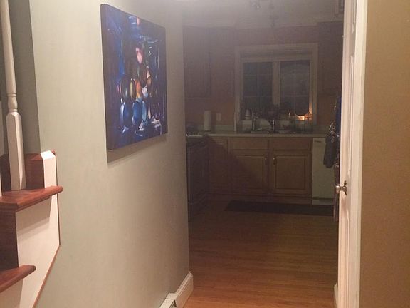Bright sunny unit, gleaming hardwood floors, 2.5 bathrooms, great size bedrooms with carpet, laundry hook-ups (electric) dining room, dishwasher, stove, refrigerator, large back porch, plenty of driveway parking, great side yard and 15 acres of backyard with walking paths. This unit also has a studio apartment with a second kitchen, lots of storage space, and its own washer dryer hookups. This unit wont last long call today to book a showing. no pets, please. (Fish Friendly). Month to month basis Tenant must provide utility ( oil heating, electrical). Applicants must provide positive references (from current landlord and employer) and credit report. Please bring them with you during your showing.