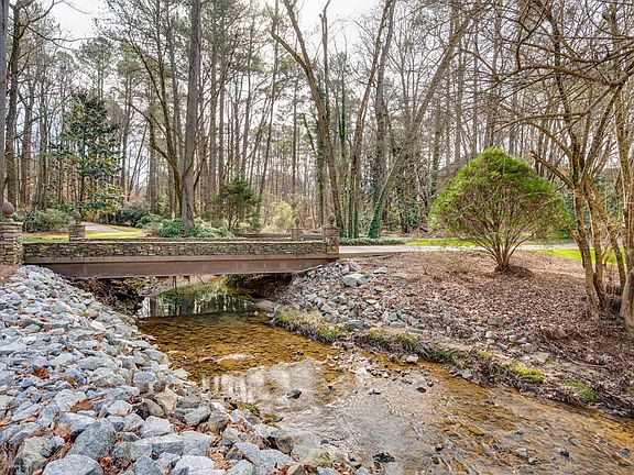 Savannah charm in Sandy Springs. FIRST time on the market. Unbelievable opportunity to own a gorgeous gated home on one acre and tucked back in a cul-de-sac of four custom built homes. Access the home down a gorgeous tree lined drive across a quaint stone covered bridge and creek. This stately home offers gorgeous hardwood floors throughout the first and second floors. A large chefCOs kitchen features custom cabinets, exotic granite, a huge island for entertaining, breakfast area, butler's pantry, dumbwaiter, and hallway to the banquet size dining room. The great room offers open views through architectural arches into the kitchen and features a stacked stone fireplace, wet bar, and walk out to a brick lined patio. Formal office/living room, large bedroom suite with a full bath, and pretty powder room complete the main floor with 10' and 12' ceilings. Upper level fireside owner's suite is complete with a morning bar, sitting area, tons of natural light, and spa-like master bath with Jacuzzi tub, walk in shower, double vanity, and large his & her walk-in closets. Second level also boasts two additional bedrooms with en-suite baths and a separate set of stairs that walk up to a HUGE unfinished space that could be finished into a teen suite, apartment, gym, office etc. The terrace level features another bedroom with full bath, game room, wet bar, and workout area plus plenty of unfinished space for storage. Do not miss the private set of stairs in the garage that leads up to an area that could be finished into a separate Au Pair apartment. This home exudes class and charm. New roof, two new HVAC, new exterior paint, new cooktop and double ovens.