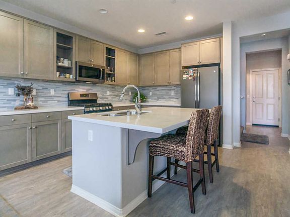 Wonderful Springville Home in Camarillo with 3 Bed, loft, 2.75 baths and balcony off the Master Bath. Soothing cool gray tones blanket this home with gray washed cabinetry, wood laminate flooring, white quartz counter tops, this home is move-in ready. This floor plan offers a great living space that flows naturally from room to room. The kitchen highlights white quartz counters, custom back splash, stainless steel appliances and island with seating area. Also a nice and bright living and diningroom. A convenient down stairs bedroom and bath finish off the main floor with attached 2 Car Garage. Up stairs enjoy the Master Bedroom with carpeted floors, walk-in closet and luxurious Master Bath featuring quartz counters, 2 sink vanity, stall shower and separate soaking tub. Also access to the balcony for that morning coffee. You will also enjoy the loft, and 3rd bedroom with en suite bath and up-stairs laundry room with sink. Leased Solar panels will keep your utility bills down as well. Step out side to the private court yard with the soothing sounds of water flowing through the pond. This home is close to the Community Park, Camarillo Outlet Mall, restaurants, schools, and churches. Stop by today.