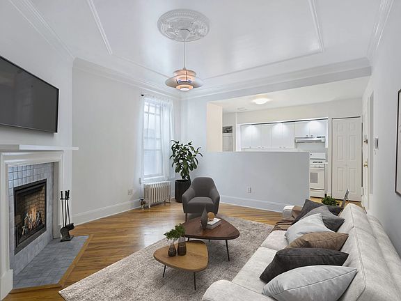 PROSPECT PARK 1BR CONDO!!! At the crossroads of Park Slope and Prospect Heights this charming one-bedroom, one-bath, CONDO offers an amazing location and combines the lifestyle you desire, with a price that fits your budget. Wonderfully proportioned, sunny and quiet, this corner apartment features high ceilings, and a working wood-burning fireplace. The open kitchen with a washer and dryer already installed, is great for entertaining. A short hallway provides great separation from the full-sized bedroom that easily accommodates a queen sized bed and has a walk-in closet. 180 Sterling Place is pet friendly and located in one of Brooklyn's best locations - you will find yourself just steps from Prospect Park, Barclay Center and right around the corner from the vibrant 7th, Vanderbilt and Flatbush Avenues - the B,D,N,R,Q,2,3,4,5 subway lines are all within a few blocks. The building has a video intercom and bike storage is available. Furnished images are virtually staged