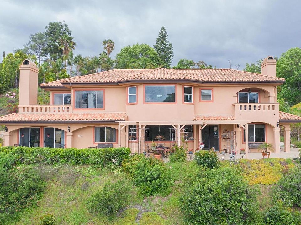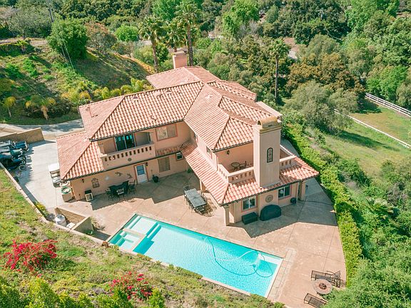 Incredible 2.5 acre equestrian estate with two separate residences. Approx. 3387 SqFt main house and 1100 SqFt guest house. 4+ 4 Main house w/panoramic views, gorgeous master retreat and light open plan. Guest house is one level with granite kitchen, 1 bed & loft plus 1.5 baths, living room, laundry and total privacy. Three stalls, tack room, large bonus shed and riding arena with local access into miles of Coastal mountain riding trails. Parking for RV, boat, horse trailers, or multiple cars. Pool and two outdoor spas. Private gated entry. Plans for 1000 SqFt additional garage.