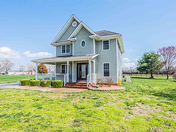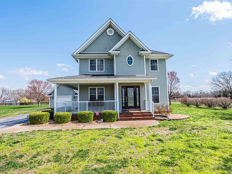 Beautiful 3 bedroom, 2.5 bath home near the transpark and I-65, yet in a country setting. Enjoy sunsets from it's wrap around porch. Home has a large open floor plan with a walk in pantry and a spacious living area. The detached garage has an extra large upstairs perfect to make into a "man cave" or for tons of storage. Home is eligible for 100% financing. Don't let this one get away. With all this space, it won't last long.