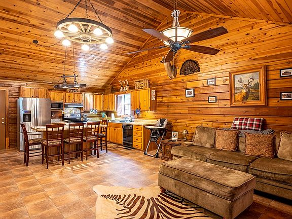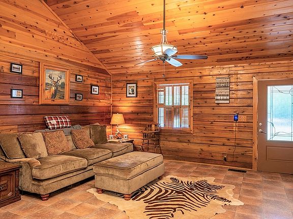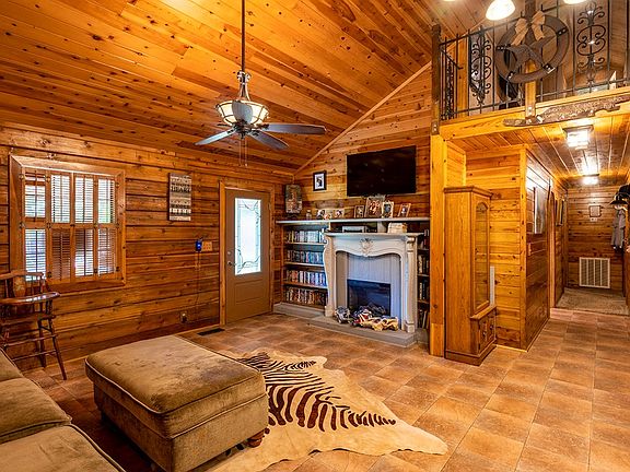 AFFORDABLE UNIQUE CABIN HOME! AMAZING WOOD WORK THROUGHOUT!!! This unique home was custom built and includes both heart pine and cedar wood- features approximately 1,500 sq ft of living space- 3 bedrooms, 2 full baths plus a loft area! The main living area is a nice OPEN floor plan!!! The living room has a vaulted ceiling, an electric fireplace and built-in's! The kitchen has a large island, solid wood cabinets, updated countertops and 2 pantries! The master bedroom with private bath is located downstairs. The master bath includes a jacuzzi, separate shower and a vanity space! Bedroom 2 is very nicely sized (also located on the first floor). There is a built-in desk space located just off of the laundry room! Bedroom 3 is located upstairs and is connected to a small loft space (this would make an amazing teen suite)!!! Additional upgrades include a double carport, a large covered front porch, a large 28x28 shed with marine grade plywood, pasture areas (with water) and a newly planted fruit orchard area (including plums, peaches, apples, grape vines, pears, mulberries, figs and more! Super private setting! This home is located in a flood zone (flood insurance only runs $641/yr. Inside of the home has never flooded.