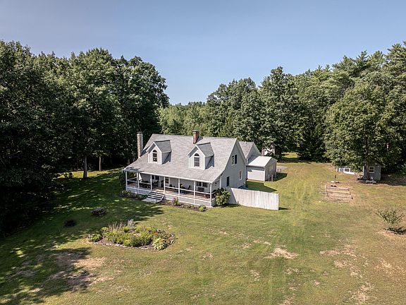Welcome to this charming Cape-style home, where traditional character and warmth are thoughtfully maintained. The meticulously landscaped driveway creates a picturesque entrance, featuring a variety of trees, including American Chestnut, Horse Chestnut, Peach, Apple, and Butternut, along with thriving blueberry bushes. A welcoming farmer's porch provides the perfect place to relax and enjoy the peaceful surroundings. Inside, natural light fills the space through clerestory windows, complementing the cathedral ceiling and classic design. The main level offers a comfortable and open flow from the kitchen to the dining area, ideal for everyday living and entertaining. The kitchen has been updated with new countertops, appliances, and hardware, blending modern convenience with timeless style. A spacious entryway adds functionality and a warm welcome for guests. Upstairs, the primary suite features a cozy sitting loft, perfect for reading or unwinding. Situated on 11 acres with over 300 feet of frontage along the Middle Branch River, this property offers a tranquil setting with beautiful views. Thoughtful updates include a wood stove with a stone hearth, refreshed decking rails and side deck. With its inviting charm, well- maintained updates, and scenic surroundings, this home is a wonderful opportunity to enjoy classic New England living.