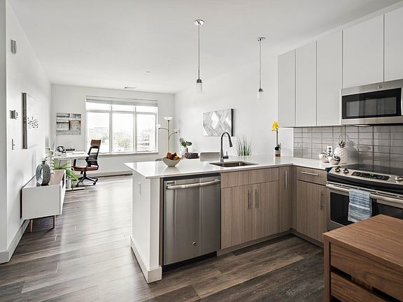 Situated alongside the picturesque Charles River, this building offers a wealth of amenities to enhance your living experience. From a state-of-the-art fitness center and rowing room to a stylish club lounge and inviting outdoor courtyard, there is something for everyone. Our residences are meticulously designed, featuring exquisite inspiration and tasteful appointments. The natural textures and colors create a cozy ambiance that beautifully complements the sleek stainless-steel appliances, quartz countertops, and modern, minimalist kitchen design. Ideally positioned in Allston, MA, right by the scenic Charles River, Telford 180 is just a short drive from Harvard Square, Chestnut Hill, Arsenal Street shopping, and downtown Boston. Please take note that this unit, located on the 6th/Penthouse floor, boasts elegant engineered hardwood floors throughout and offers stunning views of the Boston city skyline. Comes with one large garage parking spot