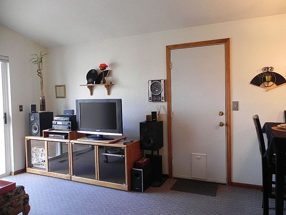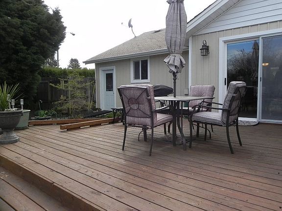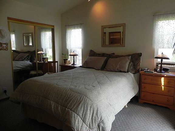 Just a hop & a skip from the park, this bright & beautiful 3 bedroom, 2 bath home is a must see! Covered front porch. Vaulted ceilings, pellet stove, forced air-heating with window a/c. Master suite with deck access. Kitchen open to the living room. Fenced yard with deck, rain barrel, BBQ pit, water features, and more. 2-car attached garage. Move-in ready!