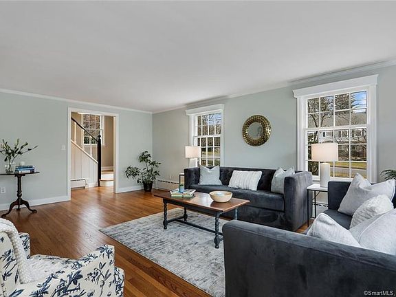 Life is good on Toilsome Hill Road! You'll love this pristinely maintained and classically appointed colonial in the heart of Stratfield Village. Freshly painted interior and exterior and a nearly new cedar roof, this home offers all the modern updates for today's living making this a truly turn-key and low maintenance home. Charming curb appeal w gorgeous stone walls, professionally landscaped yard w/ sprinkler system, and a lovely rear flag stone patio for BBQ and entertaining. The spacious & professionally designed kitchen lends itself to large family gatherings and dinner parties- granite countertops, stainless steele applicances, Viking range, subzero fridge, with island seating for 5 and large informal breakfast area. Large & Sunny LR/FR with f/p, Dining Room w/ builtins, 3 season sun-porch with radiant heated floors, and a Den on the main level that could be used as a 4th bedroom, with full bath off hallway. The upper level provides 3 generously sized bedrooms and sitting area/nursery and 2 additional full baths. Partially finished LL offers another 800 square feet of living space. And last but not least, an oversized and custom built mudroom with tons of cubby's and hook and builtin's that leads from the Kitchen to the attached 2 car garage. You'll feel right at home in this warm and sparkling home.... lovingly and meticulously maintained.