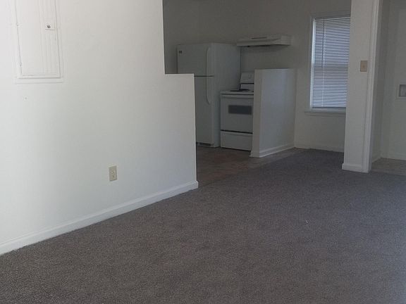 Freshly painted two bedroom house with new carpet. Kitchen has a stove and refrigerator. Also has washer/dryer connections. Owner pays water and tenant is responsible for $35.00 monthly water charge. Tenant must get the electricity in their name and pay the bill.