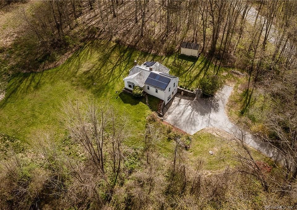 Welcome to Pomfret! This ranch-style home close to the Airline Trail features a private 3 ac. lot with plenty of space. Main floor offers a spacious primary bedroom, secondary bedroom, living room, kitchen, & bathroom with washer/dryer. Eat-in kitchen boasts plenty of cabinets and storage space. Basement has half-finished, half unfinished space, hearth for a wood stove located on unfinished side, lots of potential for additional living space/playroom/office. Back deck is great for watching wildlife and has lots of room for entertaining. Shed/storage building, plenty of space for parking.