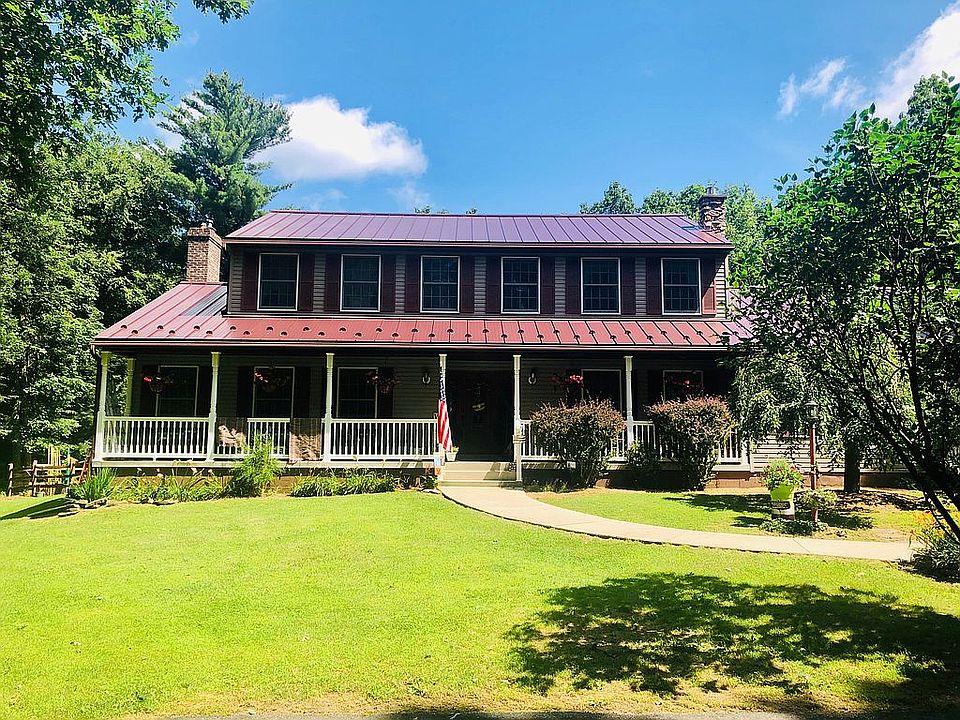 This is 4 Bedroom 3.5 bath Colonial home with front porch and back deck with a professionally landscaped back yard with an Anthony Sylvan heated, inground pool (20 ft x 40 ft) with electric retractable cover for summer and stationary cover for winter. Major kitchen remodel included all stainless steel appliances, quartz countertops, added breakfast bar (with Quartz countertop & pencil lights) and ceramic tile floor. Front door replaced with designer Therma-True door and matching sidelights, new Anderson sliding patio door and back door at laundry room. Trim throughout kitchen and foyer upgraded to oak trim. Well pump replaced and water softener system added 2017 and new burgundy metal roof added 2018. Attached garage was converted to a handicap Inlaw suite containing living room with stone/gas fireplace, bedroom, walk-in closet, bathroom with handi-cap walk-in shower and sunroom overlooking the backyard. Neighborhood Description: Secluded, private 3 acres in the Pocono Mountains.