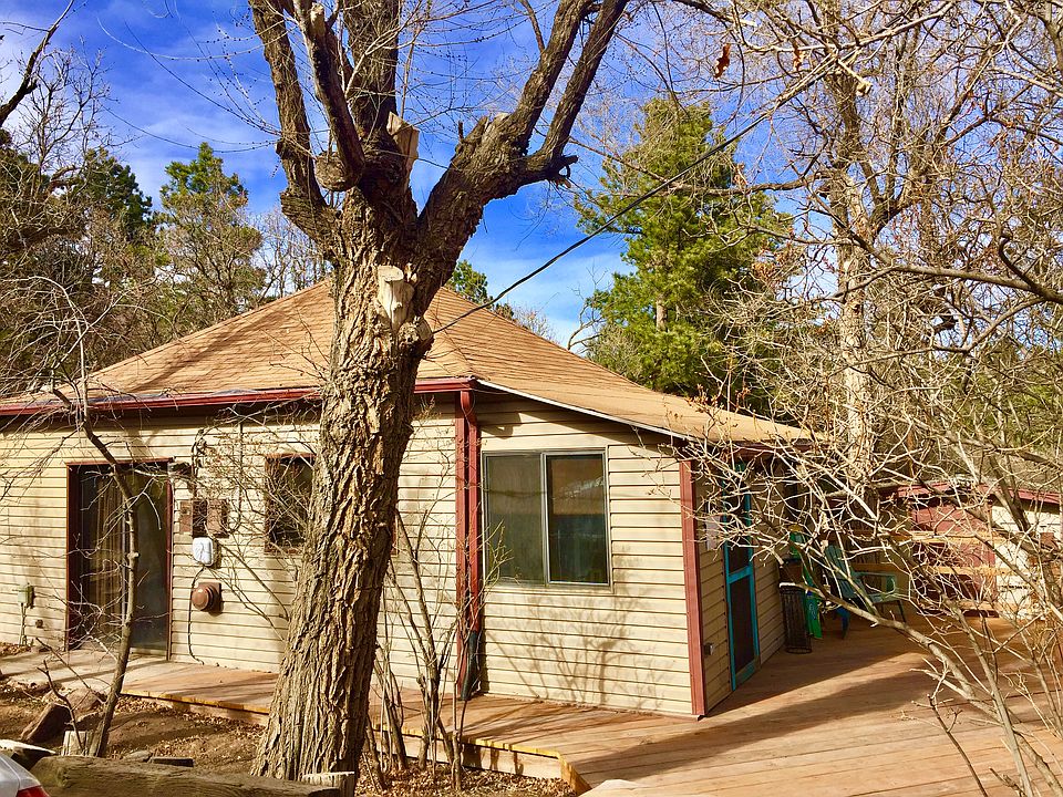 Own a piece of Palmer Lake! This charming turn-of-the-century home is ready for move in! New interior paint, new washer/dryer combo, new decks! Cozy family room with open floor plan and updated kitchen! Custom pot rack, lots of shelving, bar seating and newer cabinets! Newly installed wall heater warms the whole house. Two bedrooms with new paint and lots of windows! Full bath on main level and large yard for enjoying the Palmer Lake summers! With no more water taps in Palmer Lake this is a great house to expand!