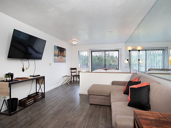 Great location at Marina Cay Resort in the quaint village of Bigfork. Top floor (3rd level) in the Waterfront building over looking Bigfork Bay with great mountain and Flathead Lake views. Updated open studio unit with queen size bed and queen size sofa sleeper. "Turn-Key" furnishings ready for you or your guests to enjoy. A short walk from the resort is the village of Bigfork, celebrating every season with special events such as the Whitewater Festival, Bigfork Summer Playhouse, the Festival of Arts and yuletide sleigh rides. Bigfork boasts an array of famed art galleries, charming boutiques and award-winning restaurants with a wide variety of culinary delights.