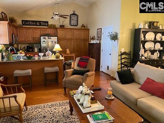 - RoomKitchenFeatures: Granite Counters, Pantry, Ceiling Fan(s), Floors-Hardwood, Cabinets-Stained, Bar