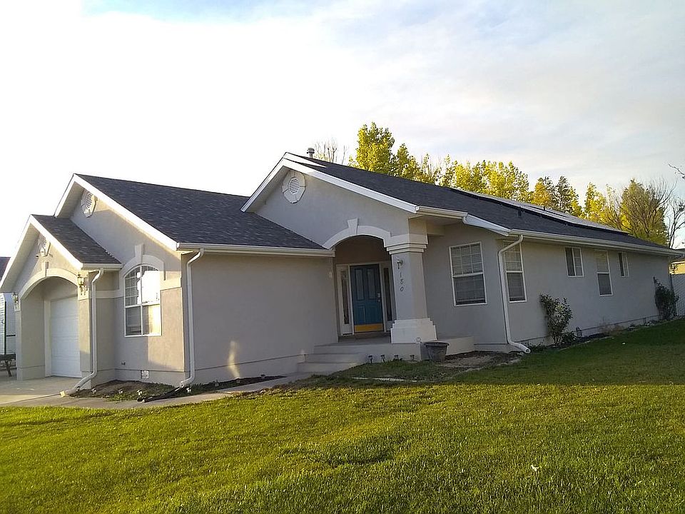 Large private back yard with glassed in private patio with pellet stove and 8 foot California glass doors plus nice storage shed and large concrete RV pad. New Stucco on whole house and shed put on in September, 2018. New Tamko 50-year Heritage Premium asphalt shingles installed in November, 2018 on house and shed (old shingles removed). 21 305-watt SolarTech solar panels installed in December, 2018, with Solar Edge Solar Edge Inverter and Power Optimizer, and Sonnen Eco10 Battery System with Inverter. Monthly electric bill is $15. New gutters installed July, 2019. Vaulted ceilings. New dishwasher and stove oven installed in 2019. French doors to inclosed patio from master bedroom and living room. 2 car garage.
