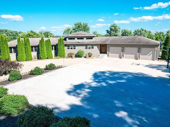 This beautiful custom ranch with walkout basement on almost 11.5 acres is the home you have been looking for It has all the room you need with 4 bedrooms, 3.5 baths, over 2400 sq ft on the main floor, and another 2400 sq ft in the finished basement. As you enter the home you are greeted by a gorgeous open concept kitchen/living area with over 17' high ceilings, wood accents, and tons of natural lighting. It also includes stainless steel appliances with an over sized fridge/freezer, Wolf range, and Broan hood. The large master suite features a WIC, whirlpool tub, and walk in shower. The basement has tons of potential uses as it has two extremely large rooms and tons of storage. The home also includes a 3 car heated attached garage. This house has been part of a larger surrounding property that was utilized for over 20 years as a produce farm. The addl property consists of +/- 143 acres that are also available and can be used to farm organically. This awesome property won't last long