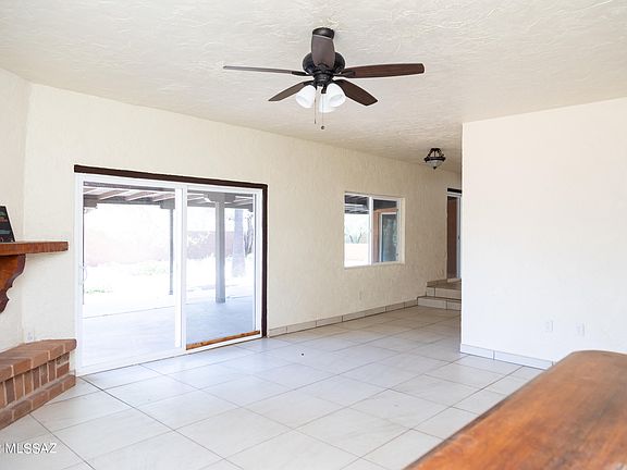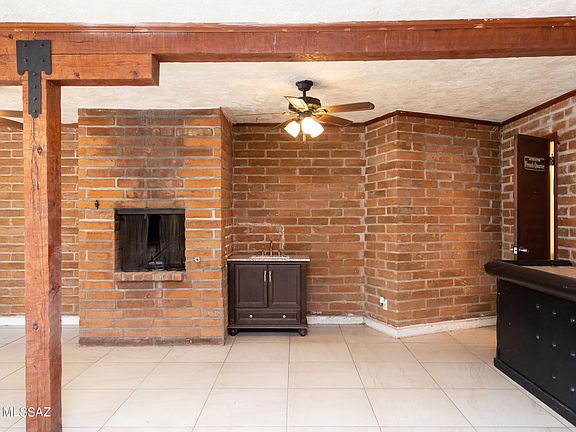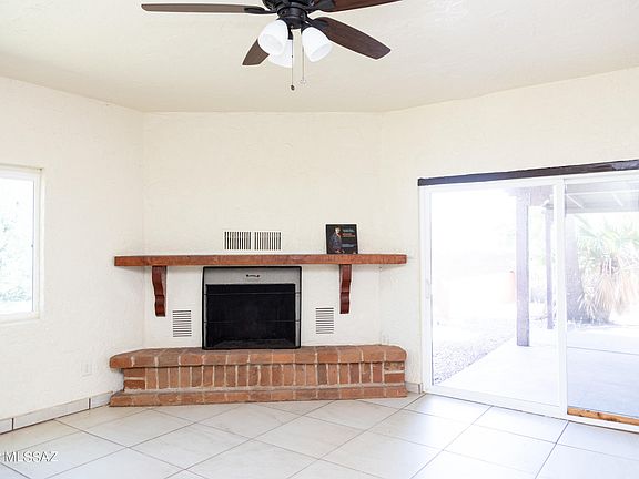 Unique Adobe style 3 bedroom 2 bath home nestled in a Cul-de-Sac in the highly sought after Acres Subdivision. Renovated to included oversized tile throughout, Brand new appliances and updated kitchen with dark cabinets and beautiful stone countertops. Primary bedroom features his/hers closets, renovated bathroom with Bluetooth speakers, custom tile walk in shower, dual stone sinks, and extended height vanity. The wood burning fireplace with chunky wood mantle is a conversation piece for all your guests. Bonus room with wood beams exposed brick and a fireplace is perfect for a secondary living space, game room, bar, etc. Even includes a full bath. Outside, you have a beautiful view of Arizona 's Santa Rita Mountains and gorgeous desert landscape. Call to schedule your showing now!