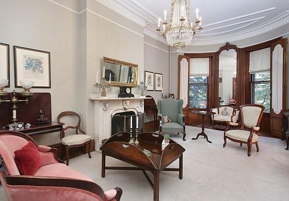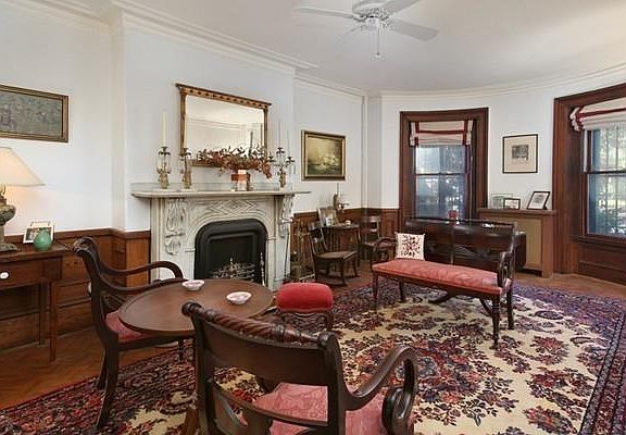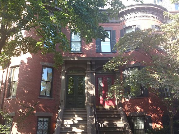 Rare and beautiful grand scale Victorian townhouse situated across from Hayes Park with views beyond of downtown Boston. Original Victorian details are on every level. The main Parlor level with kitchen, dining and living, has intricate plaster crown moldings and medallions, wood door and window casings and carved marble mantels. Master bedroom floor has an en-suite bath, great closet space and adjacent home office or study with beautiful park views. The top floor has a spacious guest bedroom and large family room with a wall of windows giving unobstructed views of Downtown Boston. Street level in-law apartment, ideal for live-in nanny or guest. Full basement with great storage leads to the deep, landscaped backyard. Central A/C, alarm and more.