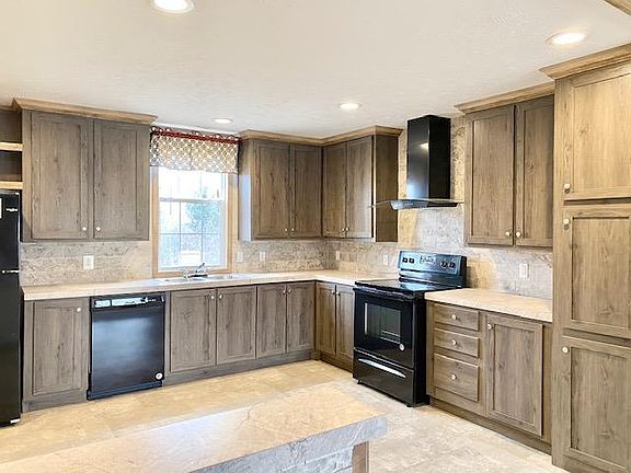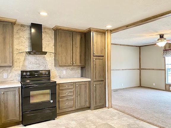 Beautiful new gray vinyl siding doublewide home that sits on a permanent foundation that is move in ready. This home features 3 bedrooms and 2 bathrooms. This home has 2 x 6 walls and sheet rock throughout. This home also has a split bedroom floor plan with an open concept kitchen and living area. The kitchen is beautiful with nice whirlpool appliances with room for a dining area. This home also features a blacktop driveway and parking along with concrete sidewalks. Front and back decks are a plus! The master bathroom has dual vanities and a garden tub along with custom shelving. Double doors that go in to the closet in the master bedroom. Lots of very nice touches for beautiful living. There is carpet and vinyl throughout with a separate laundry/mud room with rear entrance. This a all new and comes with a 1 year home warranty with a full price offer...