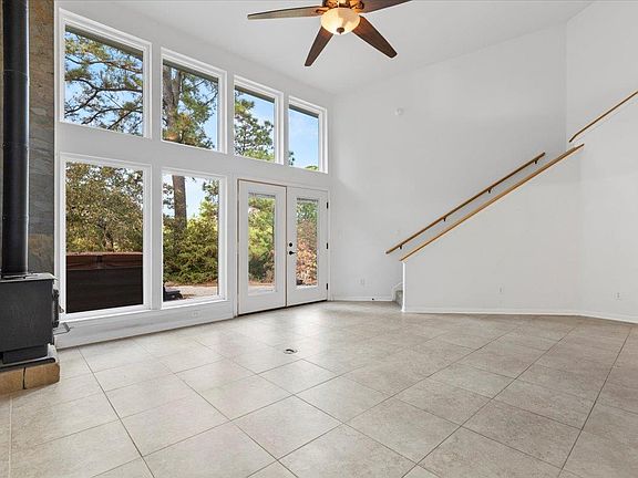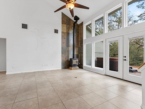 Wood burning stoveWooded hilltop settingBright and open floorplanOutdoor patiosRecently upgraded windowsNatural lightingCovered storage