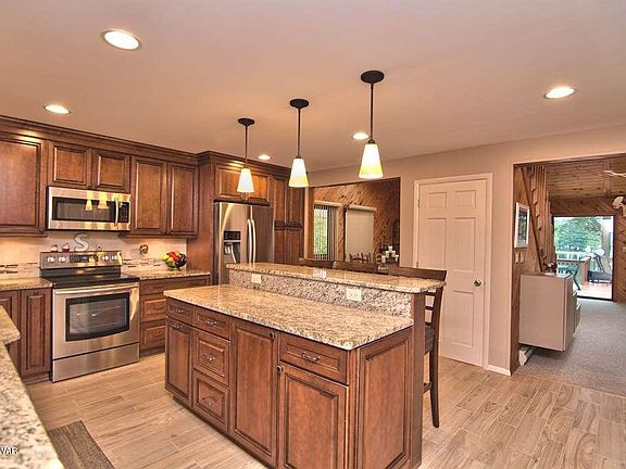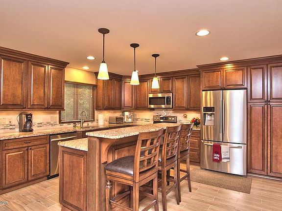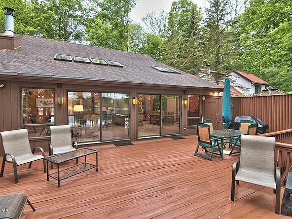 Stupendous, enormous, and breathtaking! This incredible 5 bed, 4 bath home on motor boating Roamingwood Lake just 2.5 hours to metro areas including NYC and Philly is the PERFECT vacation or fulltime destination. The brand new stainless and granite kitchen has on- demand boiling water, It opens to both the living and dining areas with soaring ceilings. Main level master suite, beds and baths on all 3 levels. The den has a built in bar and the lower bath features a steam shower. The open plan is perfect for entertaining and leads out to the large upper deck with INCREDIBLE water views. A small shed on the deck for cushions and 2 sheds dockside, 1 with electric. The detached garage has a 2nd fridge for convenience. The home is offered with most furnishings and is ready to be enjoyed