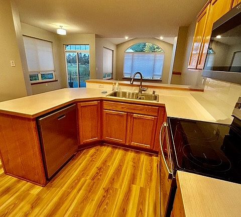 Enjoy peaceful living in this spacious 2-bedroom, 2-bath condo overlooking expansive grass and pond views. With 1313 sq ft of comfortable living space, this ground floor unit has all new floors & paint with an open concept layout, vaulted ceilings, and a cozy gas fireplace that make the home feel bright and inviting. The kitchen features all new appliances & ample cabinet space that flows seamlessly into the dining and living areas. The primary bedroom includes an en-suite bath with soaking tub & separate shower and generous closet space, while the second bedroom and full guest bathroom provide plenty of room for guests or a home office. Additional highlights include in unit laundry, attached 2 car garage and a private deck overlooking the former golf course. Conveniently located near restaurants, shops and walking trails, this home offers the best of Lynden living.