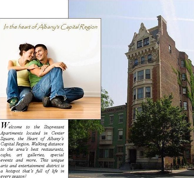 The Stuyvesant Apartments are in Center Square, the heart of Albany's Capitol region within walking distance of the area's restaurants, cafes, art galleries, jazz clubs, special events and more. This unique arts and entertainment district is a hotspot that's full of life in every season. Also near Washington Park, Lark Street, Empire State Plaza, county offices, the downtown Business District, Albany Med & universities. The Stuyvesant Apartments proudly offers New York City style apartments that are freshly painted, clean and include heat, hot water, Rent includes heat, hot water, trash collection, water, sewer, snow removal. Tenant responsible for electric and for gas when applicable.