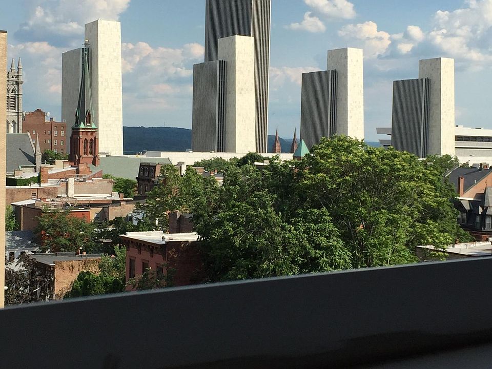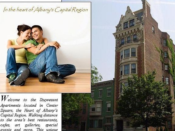 The Stuyvesant Apartments proudly offers New York City style apartments in an ideal location, which we deliver freshly painted, clean, and include heat and hot water. This apartment is on the top floor of the building and offers spectacular views of the Albany landscape. The Stuyvesant Apartments are in Center Square, the heart of Albany's Capitol region within walking distance of the area's restaurants, cafes, art galleries, jazz clubs, special events and more. This unique arts and entertainment district is a hot spot that's full of life in every season. Also near Washington Park, Lark Street, Empire State Plaza, county offices, the downtown Business District, Albany Med & universities. Cats or dogs are considered, but require approval by the landlord. First month and security are required for tenancy. The requirement of last month's rent in addition is contingent upon the results of the application process. Please call for more information and to schedule a viewing! Rent includes heat, hot water, trash collection, water, sewer, snow removal. Tenant responsible for electric and for gas when applicable. Great Views of Albany and the surrounding mountains.