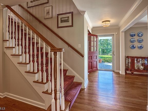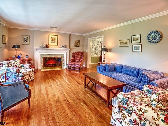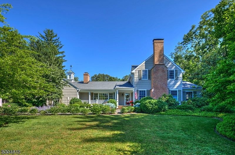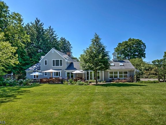 "Tranquility" This light-filled three-bedroom custom home was built in 1954. A well-known local architect was retained in 1998, and the current owner undertook a major renovation. Today, this charming residence offers slightly less than 3,000 square feet of finished space with detailed millwork, hardwood floors, refined finishes, built-in bookshelves, a gourmet kitchen and three unique fireplaces. A delightful covered porch entry opens into a foyer that adjoins the formal living room and a wood-paneled library. The living room features a wood-burning fireplace, views of the front garden and long views of this bucolic section of Morris Township. The library is a peaceful retreat for reading, working or relaxing by the corner fireplace. A floor-to-ceiling curved bay window in the dining room frames the view of an expansive back lawn and several gardens. Adjoining the dining room is another sun-filled room that overlooks the back lawn and currently serves as an office/sunroom. This room is directly accessible from the attached two-car garage and from the driveway through a side door. Canterbury Design was the genius behind the kitchen renovation that took place in 2014. The sleek, efficient layout features top-of-the-line appliances, custom white cabinetry and designer hardware. A powder room is conveniently located between the kitchen and the dining room. Two large bedrooms and two full baths are located on the first floor, offering the option of single story living since one of the bedrooms is a generous suite. An outside path from the driveway to the kitchen provides handicap accessibility to the first floor. Upstairs, the current master suite exudes luxury. A sunny sitting room is open to the dressing area and another wall of windows provides more of the gorgeous garden views that define this special home. French doors open to a large bedroom with a tray ceiling, the third fireplace and multiple windows that frame the views of Washington Valley. The master bathroom features a custom cherry vanity, custom tile work and a shower over a large soaking tub. The lower level, a walk-up attic, a second attic and the oversized attached garage provide ample unfinished storage. The property is situated on 2.716 acres of beautifully landscaped land in the historic Washington Valley section of Morris Township, a desirable area known for its natural beauty and historical significance. The current homeowners transformed the backyard into a tranquil oasis, featuring a wide patio and deck behind the residence. The lawns are lush and level, and they provide the perfect backdrop for a profusion of colors found in the established perennial beds and mature trees. Several charming outbuildings accentuate the back lawn, including a finished studio that provides the perfect spot for a home office. An adjoining finished structure offers additional storage. The board and batten garden shed is both a delightful focal point and a functional space for the storage of lawn and garden equipment. Tucked behind the brick-floored greenhouse is a secluded bluestone patio. One side of this land borders protected space, ensuring that the long views of the surrounding countryside will remain in perpetuity. Morris Township was incorporated in 1740, and is an idyllic community of about 15 square miles containing rolling hills, open space and established neighborhoods. Often referred to as a "donut township" since it surrounds Morristown, it shares a school system and library with Morristown, although both maintain separate municipal and public services. Close proximity to a network of highways and Midtown Direct train service to New York from the station in downtown Morristown add to the appeal of this location. Newark Liberty International Airport is approximately 30 minutes by car.