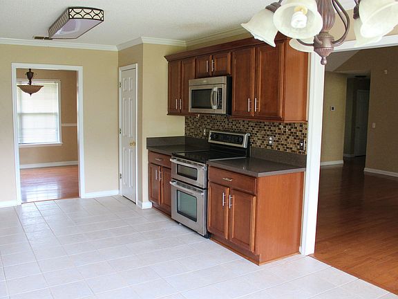 This beautiful three bedroom, two bath home will motivate you to furnish its 1760 sq. ft. with your style. Spacious living room for everyone's entertainment. The living room and hallway features wooden flooring, whereas the kitchen has tile flooring. The three bedrooms are carpeted and the bathroom floors are styled in vinyl. The upgraded kitchen, with eat-in area includes stainless steel appliances - oven, refrigerator, microwave, and dishwasher. Another aspect the kitchen shows is a nice and matching backsplash. If the eat-in kitchen is not enough for your dining needs, no worries at all as this home has a formal dining room. The house also includes a one car garage . Additionally, this home has a screened-in porch for your evening entertainment. Ceiling fans, nice curb appeal, and brick appearance on the outside are also the highlights of this house.