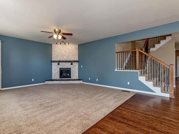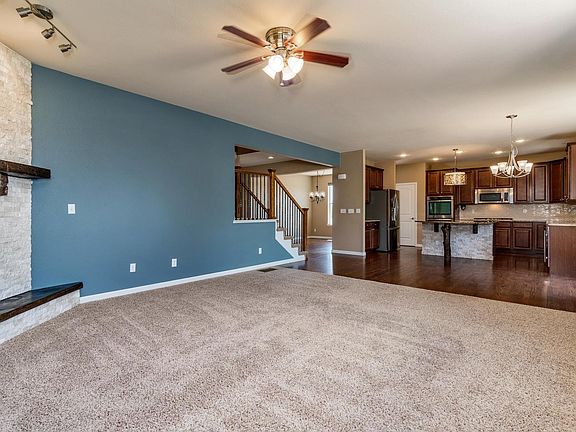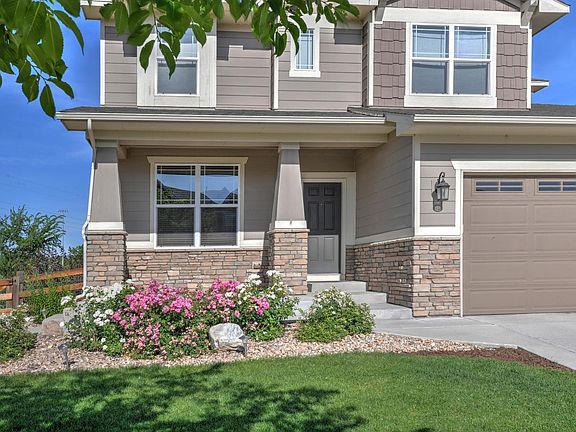 Fabulous mountain views from this your back patio in this gorgeous home.. Spacious 5 bed/4ba family home w/upper loft in desirable Erie Commons. Extended Hardwood floors on main level. Kitchen is ready for entertaining with large island, SS appliances incl double convection oven,gas cooktop,large French door fridge & even a wine fridge! All open to a large family room w/ stone fireplace with mantel and hearth. Master bedroom has mountain views w/ incredible light filled master bath, his&hers vanities and plenty of room in his and hers closets. Upstairs laundry, full unfinished basement, a handyman's delight ,3 car garage w/a full wall of built in cabinets. Beautifully landscaped corner lot w/ a private back yard complete w/ a stamped concrete patio and a flagstone patio with antique cast iron wood stove. Pool community, one block from new Erie Medical Center, blocks to Community Rec Center and library. Just a short walk in to Old Town Erie's restaurants, breweries and Farmer's Market.