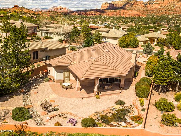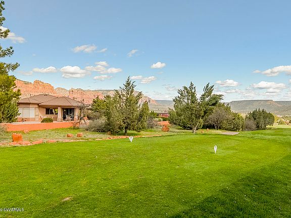 This Sedona Golf Resort home is situated on premium lot that boasts beautiful Red Rock Views and a peaceful, private view of the golf course adjacent to the 12th Tee. Enjoy relaxing on the covered patio listening to the tranquil waterfall. Cheery, open floor plan has tile flooring with carpet in bedrooms. Kitchen has granite counters, large island, custom hickory cabinets, GE Profile appliances and wonderful views. Master has ample space, dual vanities, walk in shower w/seat, combo jets/air Jacuzzi tub, custom lighting, shelves and built ins with access to patio. Upgrades: ACT D'mand Recirculating Sys, security doors, sun blocking screens, security sys, 3 car garage w/epoxy floor, 240V outlets for elect car/compressor/etc. Well-cared for, quality home. See list of additional amenities.
