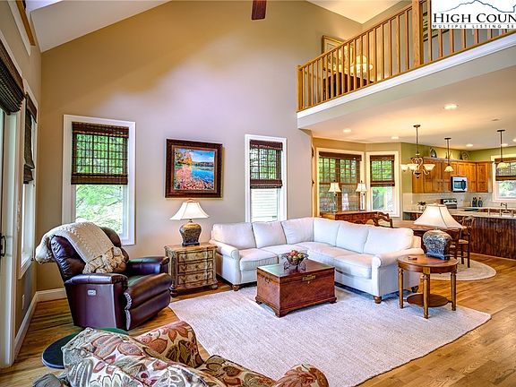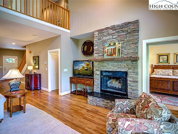 Mountain elegance Bishop's Ridge Townhouse. Centrally located between Boone & Blowing Rock. This immaculate unit features vaulted ceiling, stone fireplace, beautiful open kitchen, covered deck with built in grill and attached garage. On the main level is the living, dining, kitchen, spacious primary bedroom suite, laundry area, and a powder room. Upstairs you will find 2nd bedroom, full bath, bonus room (currently being used as bedroom) large storage closet, and nice loft area. This unit lives large. Offered fully furnished - turn key including dishes and linen. No rentals of less than 28 days. Short drive to Blowing Rock, Boone, ASU, skiing, hiking, Blue Ridge Parkway, shopping, and dining! This is a GREAT property. HOA maintains landscaping!!