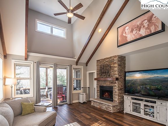 by Capehart and Washburn a few years ago. Screened porch with built-in cookout area makes springtime bar-b-queing a snap! Large walk-in storage room upstairs. Crawl space encapsulated 2022, new hot water heater 2022, fireplace insert replaced 2018. Wonderfully convenient to Blowing Rock, Boone, Blue Ridge Parkway and Appalachian Ski Mountain. Bishop’s Ridge does not allow short term rentals (28 day minimum). Unfurnished. In addition to the quarterly maintenance fee for the townhome there is a $700 annual fee BR HOA. Roof and HVAC new in 2022. 2 br septic permit.