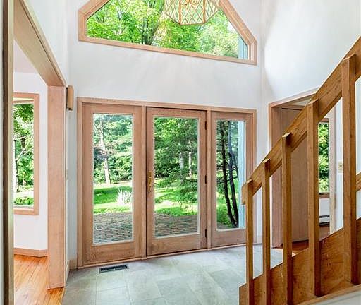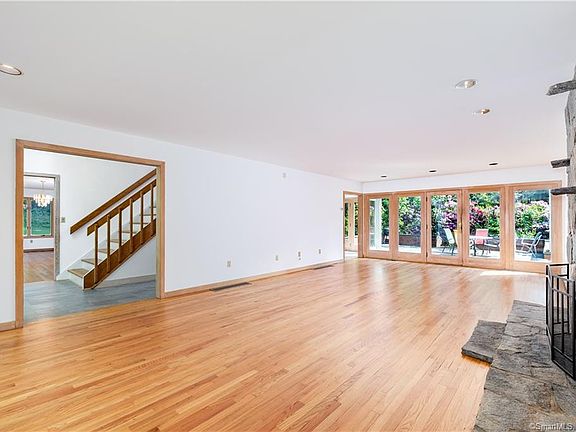 Wow! Amazing space and light in this spacious and bright colonial with a contemporary feel. The 2 story entryway with open stairway and tons of light welcomes you to this 3,500+ square foot home. Generous rooms offers space for everyone - front to back living room with stone fireplace and access to the raised stone patio. Large dining room as well with lots of windows, hardwood flooring. The large kitchen offers an abundance of cabinets and plenty of space for a large kitchen table, also accessible out to the rear patio. A den/family room/office rounds out the main level rooms, along with a nice half bath. The upper level features 4 sunny bedrooms including a spacious master bedroom with a full bath, walk -in closet and a bonus room with cathedral ceilings, a sauna and exterior balcony. 1 additional bedroom has full bath as well. The partially finished lower level with a roughed in half bath offers additional square footage and plenty of storage space. Nice outdoor entertaining and living space with a generous raised stone patio. Outdoor shower. Level yard and lovely setting in convenient lower Easton. Microwave is a Speed oven- microwave, convection, halogen combination.