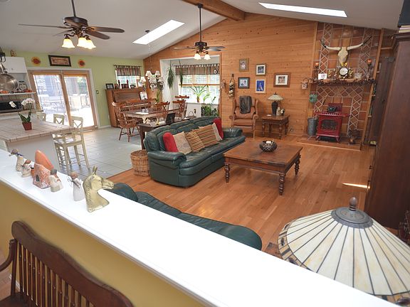 The perfect best of both worlds. Great home with open floor plan, cathedral ceilings, skylights, finished basement w/office all on 2.46 acres on a cleared, landscaped park like yard w/4 out buildings with electric. A screened in gazebo right off the back deck, perfect for those summer BBqs. Theres a large workshop/garage for ATV or dirt bikes, a front and back shed for all yard equipment and bikes and they all have electric ran to them. From the minute you pull down the paved circular drive to the cutest country home w/ inviting front porch, to the airy open feel inside, youll fall in love. A roomy 3 bedroom with 2.5 bath, the family room and extra office in the basement would make a perfect 4th bedroom if needed. The half bath down there makes this a great space for kids. Ask about the leased solar panels.