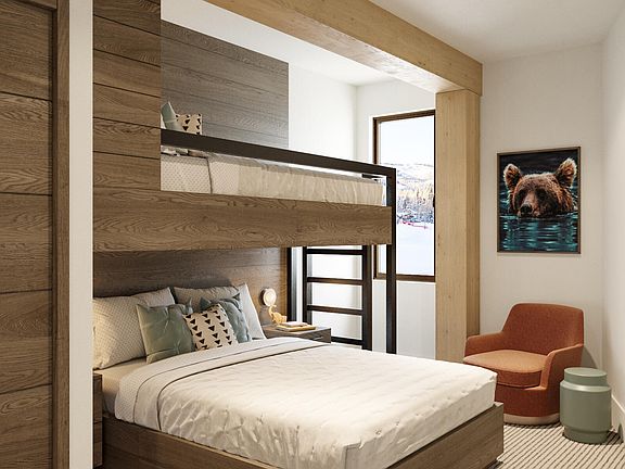 Corner walk-out residence with direct access to skiing and hiking trails. Walk-out patio with large operable window walls. Flex room allows owners to personalize use, whether office, bedroom, or media room. Spacious entertaining kitchen showcases Wolf appliances and large kitchen island. Private, direct elevator access via a gracious residence entry. Luxurious primary bedroom with walk-in closet and spa-inspired bathroom. Ensuite guest rooms with an additional powder room for the flex room.