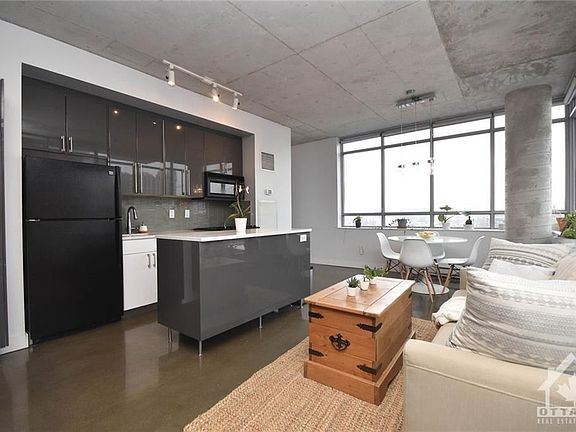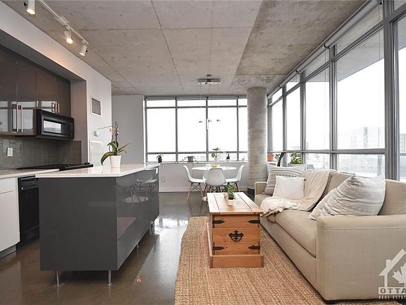 Modern one bedroom plus den (765 sq/ft) condo located in the heart of Ottawa in the popular area of Byward Market. Just a few steps from shopping, restaurants, Rideau Centre, and a short walk to Parliament Hill. This bright condo features a popular open concept layout, extra high ceilings, polished concrete floors, industrial chic style, and a huge balcony with a beautiful view. Stylish kitchen, with glossy cabinets, full pantry and a large island. Spacious bedroom with a large closet. Private den has a very functional built-in Murphy bed that allows for the multi-purpose use of spaces (bedroom, office, den...). Convenient in-unit laundry plus locker storage, underground parking, and plenty of amenities including a gym, party room and outdoor patio with BBQs. Make it your home and enjoy the downtown lifestyle in Ottawa's one of the most exciting neighbourhoods.